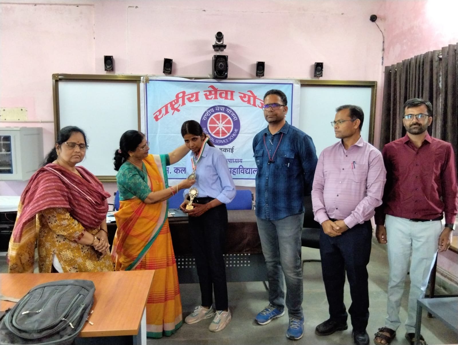 बुधवार को आयोजित कार्यक्रम में महाविद्यालय प्राचार्य डॉ. सरोज गुप्ता ने कु. चंचल अहिरवार को उनके उत्कृष्ट प्रदर्शन के लिए सम्मानित करते हुए उज्ज्वल भविष्य की शुभकामनाएँ दीं। इस अवसर पर उन्होंने अपने उद्बोधन में कहा कि राष्ट्रीय सेवा योजना युवाओं के सर्वांगीण विकास का सशक्त माध्यम है, जो उनमें अनुशासन, नेतृत्व, सहयोग एवं समर्पण जैसे गुणों का विकास करती है तथा उन्हें जिम्मेदार एवं जागरूक नागरिक बनने के लिए प्रेरित करती है।