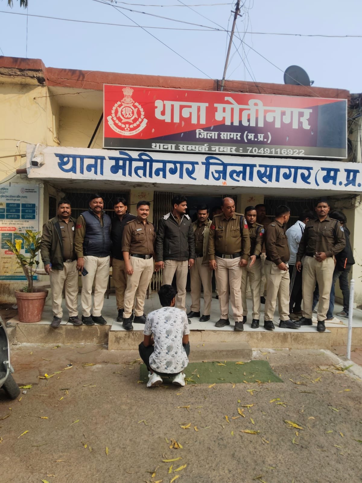 सागर। जिले में कानून-व्यवस्था को चुनौती देने वालों के विरुद्ध सागर पुलिस का अभियान लगातार जारी है। इसी कड़ी में थाना मोतीनगर पुलिस ने एक बार फिर अपनी सतर्कता, तत्परता एवं प्रभावी कार्यवाही से क्षेत्र में दहशत फैलाने वाले शातिर बदमाश को धर दबोचकर आमजन को बड़ी राहत दी है। दिनांक 03 फरवरी को वरिष्ठ अधिकारियों के मार्गदर्शन में थाना मोतीनगर पुलिस द्वारा अवैध हथियार, अवैध शराब विक्रय एवं सार्वजनिक स्थानों पर शराब पीने वालों के विरुद्ध विशेष मुहिम चलाई जा रही थी। इसी दौरान दिनांक 02.02.2026 को मुखबिर से विश्वसनीय सूचना प्राप्त हुई कि धरमपुरा, अंबेडकर वार्ड क्षेत्र में एक व्यक्ति हाथ में धारदार चाकू लेकर राहगीरों को डरा-धमका रहा है, जिससे क्षेत्र में भय का माहौल व्याप्त है।